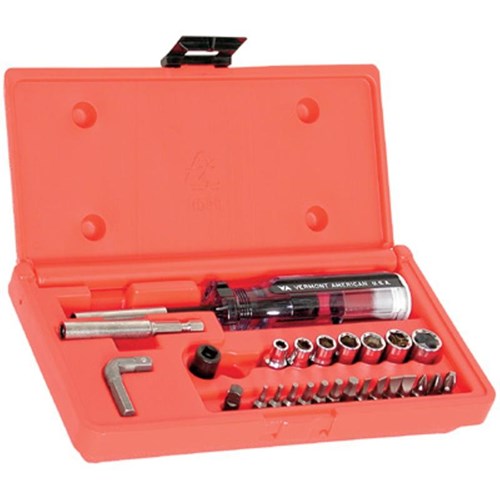 - 26 Piece magnetic bit and socket set in a plastic carrying case