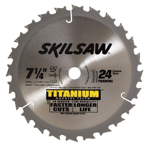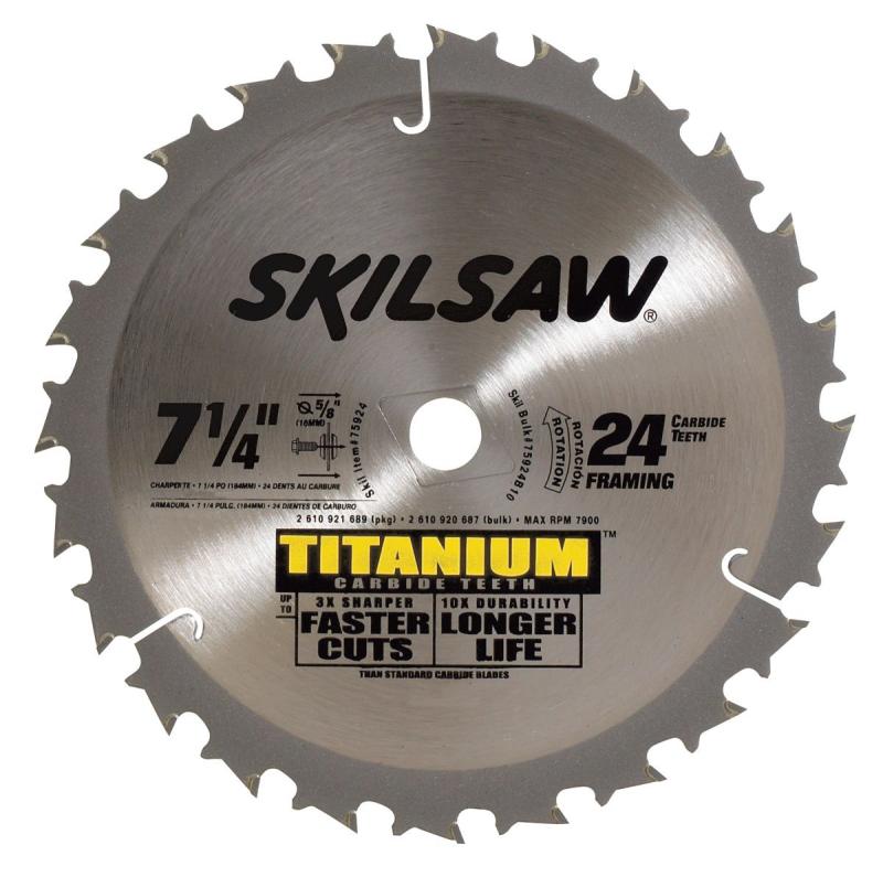 13/16 inch Diamond Arbor Knockout: YesArbor Hole Size: 5/8 inBlade Manufacturing Method: StampedBlade Tooth Material: TitaniumExpansion Slots: YesKickback Limiters: YesKerf (in): 0.09Material Cut: WoodMaximum RPM: 7900Non-Stick Coating: YesTooth Count: 200Package Contents: 10 BladesPlate Thickness (in): 0.06Progressive Blade Tooth Spacing: NoSaw Blade Diameter (in): 7 1/4Saw Blade Type: Circular SawSet / Individual: IndividualTool Weight (lbs): 1.5Tooth Configuration: Alternate Top Bevel (ATB)Vibration Dampening Technology: NoArbor Size (in): 0.625Grind Type: ATB