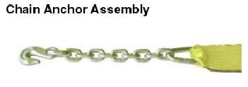 Load Hugger Series 15000 3" Wide Polyester Standard Ratchet Assemblies With Chain Anchor Assembly