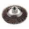 The Bevel Crimped Wire Brush is suited for general purpose surface cleaning and conditioning where the operator is likely to have an uneven surface. Milwaukee offers Bevel Crimped Wire Wheels in both carbon and stainless steel. The Bevel Brush is designed for use on 4-1/2 or 5 inch Milwaukee and competitive Grinders with 5/8-11 threaded spindles. Made of carbon steel.