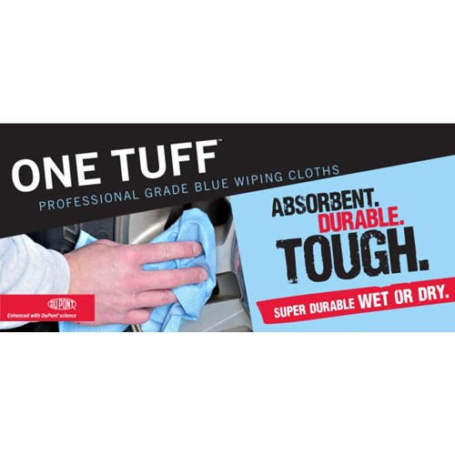 Trimaco’s One Tuff Wiping Cloth™ is engineered of DuPont™ Sontara® in a spun-lacing process, using needle-like jets of water to entangle fibers into one of the most durable wiping cloths available. It is ideal for household and paint clean up, manufacturing, automotive and machinery repair. Plus, One Tuff Wiping Cloths will save you money! With its bigger sheet size, strength and durability, you can use and re-use a One Tuff over and over!